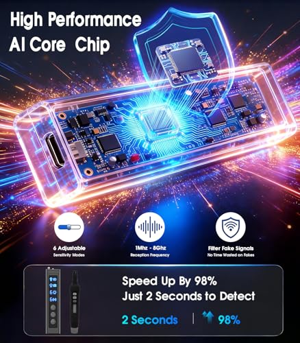 AI Hidden Camera Detector,High Precision Bug & WiFi Scanner Finder,All in One Hidden Devices Detector with 6 Sensitivity Levels & 4 Detection Modes,GPS Trackers for Hotel,Bathroom,Office,Car&Travel