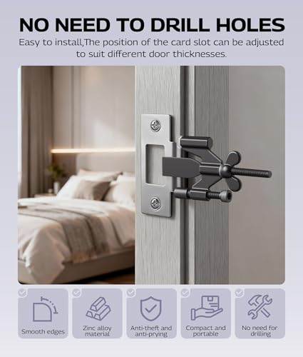 PUNCH-FREE INSTALLATION:The portable door lock for travel is easy to install without any tools.no picky installation conditions, no impact on the normal use of the door lock. Even with a key, others can’t open your door