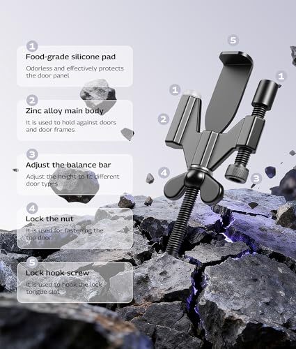 STURDY:Made of high-hardness zinc alloy, it won’t crack and is more durable thanks to its one-piece molding design. The silicone pad at the top of the product, made of food-grade silicone, effectively protects the door panel, adjustable wing nut ensures a secure installation