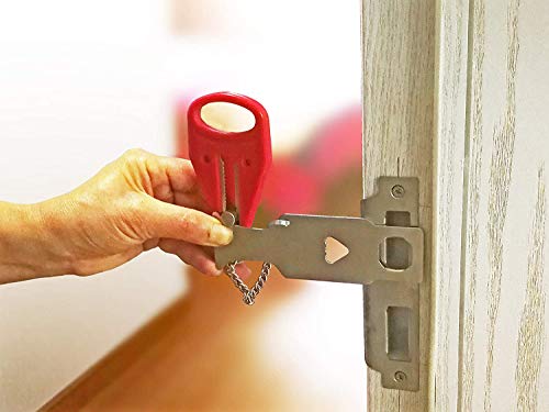 portable door lock that can be easily installed and removed in seconds on any door that open inwards, giving you additional safety, security and privacy behind it. Use it on the front door of your home and take one with you when you travel. The product can be used when staying in a hotel, any other short term rental. Great for students away at college and for those same colleges and schools to use as an affordable option for their safety lock downs.