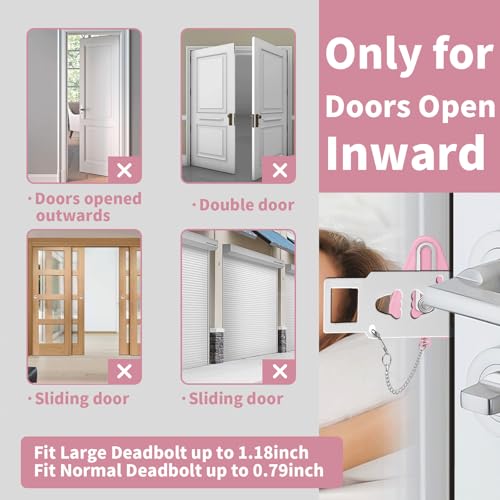 【Easy to Install and Portable】Small enough to carry in pocket or handbag.Easy to install or remove, Our Security Door lock Kit can be installed in seconds without any tools.
