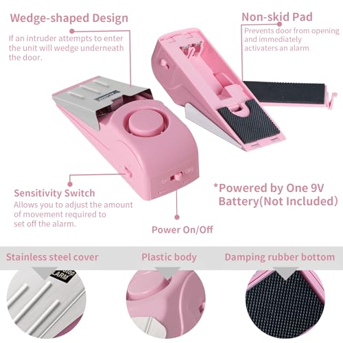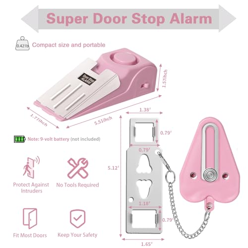 Portable Door Lock & Door Stop Alarm Set, Dual Protection Home Security Door Kit, Travel Hotel Door Lock Devices Pocket Self Defensey Tools for Traveling Hotel Home Apartment,Pink