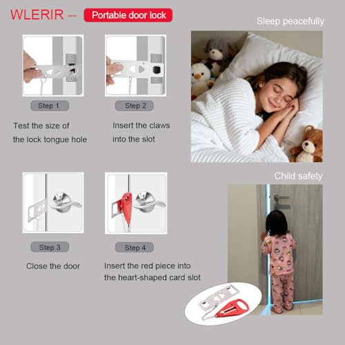 Portable Door Lock Easy to Install Without Drilling Home Security Door Lock Travel Lockdown Locks Perfect for Traveling Home Hotel Apartment College for Additional Safety and Privacy (Red)