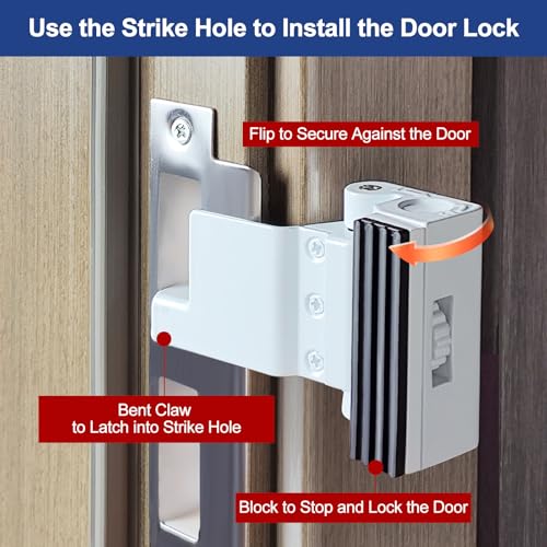 Prevents Unauthorized Entry: Suitable for inward-opening doors (not for outward-opening doors), this lock adds an extra layer of security by simply inserting the device into the door latch hole. It effectively prevents the door from being opened from the outside.