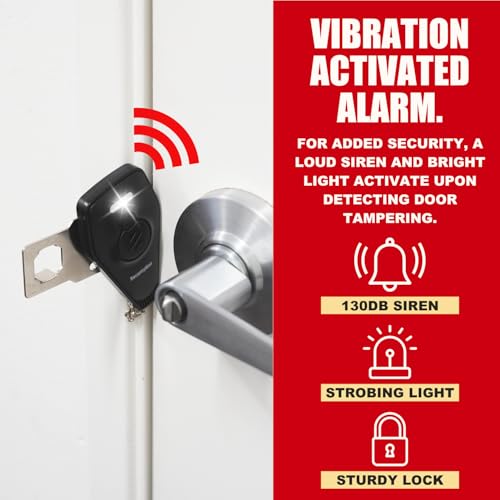 (2-in-1 Lock & Alarm System): Gain double the security with a strong lock and 130dB vibration alarm that triggers upon tampering. The hotel door lock is ideal for travelers, tenants, and homeowners wanting enhanced peace of mind.