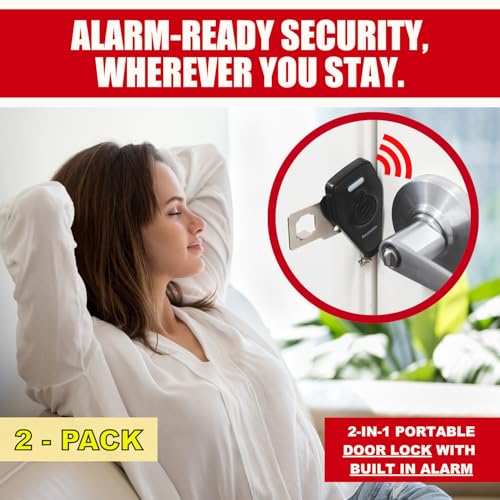 Securityman Portable Door Lock with Alarm (2 Pack) | Hotel Door Locks for Travelers Security | Loud 130dB Door Security Device for Hotel Room, Apartment Home, & Travel Safety Inside