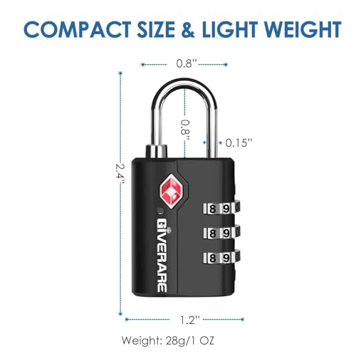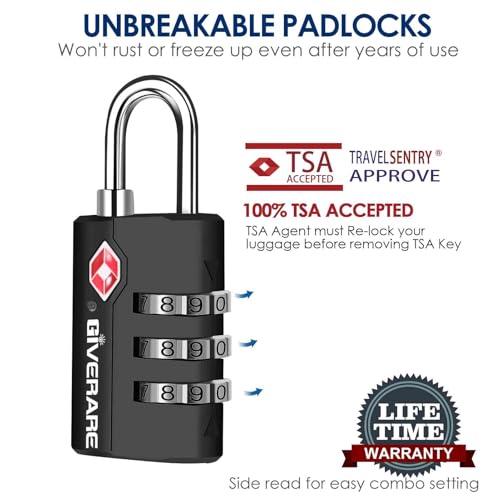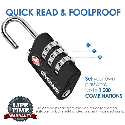 2 Pack TSA Approved Travel Luggage Locks, Suitcase Combination Lock, Keyless 3-Digit Zipper Padlocks, TSA Accepted Compatible Padlock for Gym Locker, Golf Bag Case, Backpack-Black