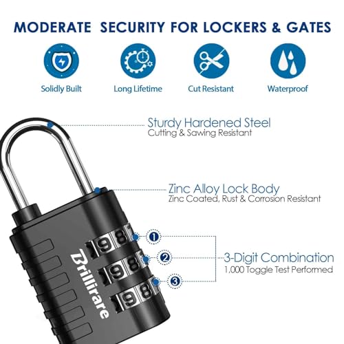 3-DIGIT 1,000 COMBOS: This padlock set offers 8 pieces of 3-digit combination locks, having 1,000 combinations that provides higher security. It adopts patented internal mechanisms, 8-10 times stronger, won’t freeze up or jam even after years of use