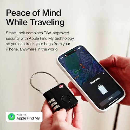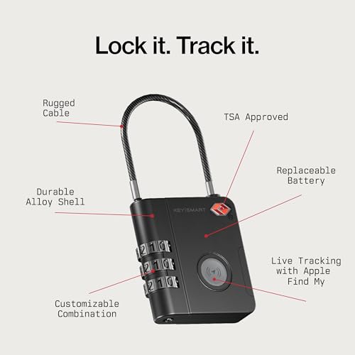 KeySmart SmartLock Tracking Luggage Locks, TSA Locks for Luggage, GPS Tracker, Combination Lock Compatible with Apple Find My App, Best Travel Essentials, Replaceable Non-Rechargeable Battery (3 Pack)
