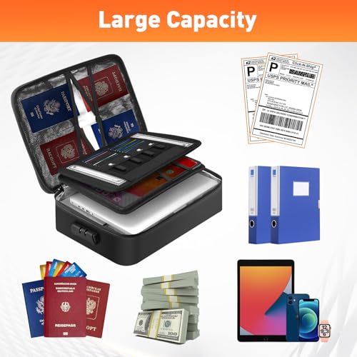 【Combination Lock Security】Equipped with a high-quality combination lock, the fireproof document box provides top-tier security for valuables like important documents, passports, laptops, certificates, cards, cash, and meeting materials. Effectively prevents unauthorized access, safeguarding your privacy and property.