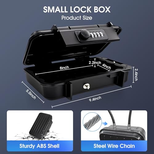 Beach Lock Box,Travel Safe Lock Box with Removable Chain,Locking Boxes with Code,Portable Lockbox for Travel Safe,Personal Items,Beach,Gym,Hotel,Dorm,Black
