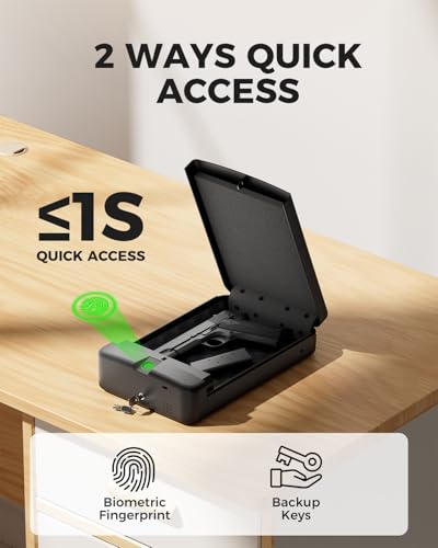 Be the first to review “Biometric Gun Safe Travel Case for Pistol, Easy Edition, Quick Access with Smart Fingerprint and Keys, Portable Handgun Safe for Home Bedside Nightstand Car”