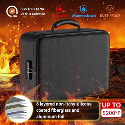 DocSafe 5200°F Document Organizer with Lock, Upgraded Heat Insulated Fireproof&Water-Resistant Box 8 Layers File Organizer, Portable Home Travel Safe Storage for Important Documents and More