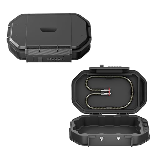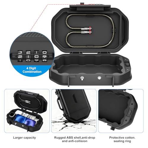 Portable Travel Safe Lock Box with 4-Digit Combination Lock – Waterproof Anti-Theft Security Box for Beach, Hotel, Car, Dorm – Includes Removable Steel Cable for Phone, Passport, Cash