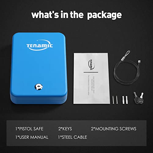 Tenamic Pistol Safe, Portable Travel Gun Safe, Solid Steel Handgun Lock Box for Home Hotel, Gun Safes for Car, Blue
