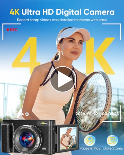 【4K Video & 64MP Photos】——Capture sharp Ultra HD footage and detailed high-resolution images with this 4K digital camera, designed for everyday shooting and creative recording. It works perfectly as a 4K digital camera for photography, helping you preserve travel memories, daily life, and special moments with clear and vibrant results.