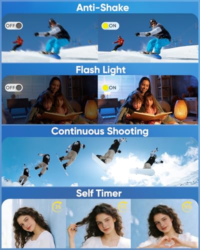 【180° Flip Screen for Selfies & Vlogs】——The 180° flip screen makes switching between selfies and regular shooting effortless, giving you flexible angles for travel videos, social media clips, and daily recording. Designed with simplicity in mind, it delivers an easy point and shoot digital camera experience for users of all skill levels.
