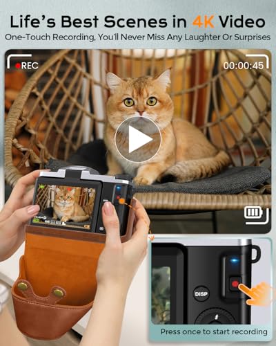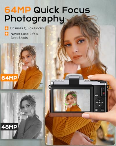 【4K ULTRA HD VIDEO & 64MP PHOTO WITH AUTOFOCUS】 Capture stunning 4K Ultra HD videos and crisp 64MP photos with the upgraded CMOS sensor. Autofocus keeps your subjects sharp and clear, whether you’re recording travel memories, family moments, school events, or everyday life. Even beginners can easily take professional-looking photos and videos.