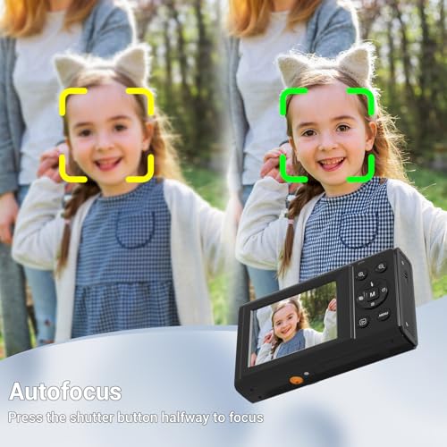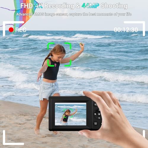Digital Camera, 4K 44MP Autofocus Point and Shoot Camera with 16X Zoom 2.4″ LCD Portable Compact Camera for Kids Teens Boys Girls Adults