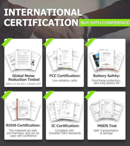 EXTREMELY SMOOTH BLUETOOTH 6.0 TECHNOLOGY: The connection to the phone is smoother, faster and more stable. Bluetooth has a wider range, better sound quality and smarter mode, allowing you to move freely in your work environment, enjoy music and answer phone calls easily. PROHEAR Hearing Protector is engineered with the latest Bluetooth 6.0 technology that provides a more stable connection (wireless range 80ft) than Bluetooth 4.0. Never worry about losing the connection in your pocket