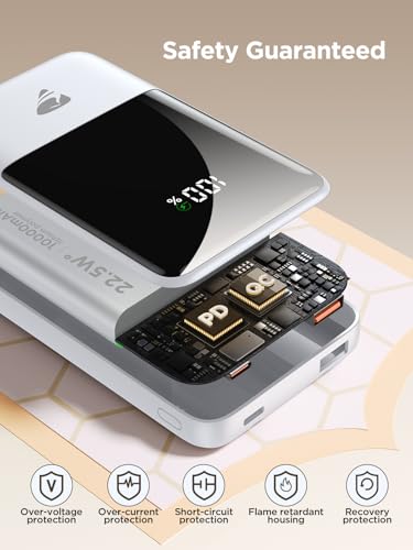 22.5W FAST CHARGING BATTERY PACK: With the 2025 upgraded 22.5W PD & QC fast charging technology, Aioneus portable phone charger provides maximum charging efficiency. Thanks to PD 22.5W USB-C cable, most phones will be charged from 0% up to 55% in only 25mins, which is 3X faster than traditional power banks. While lightning cable supports 10.5W(output), you can quick charge iPhone with iOS port. USB-A output port supports QC 22.5W and Type C Port(input/output) delivers up to 20W of power — No more dying devices!