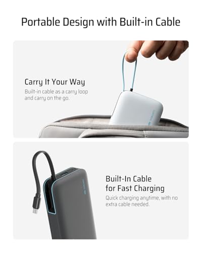 【Built-in USB-C Cable for Fast-Charging】Ditch the cable clutter! This power bank features an integrated USB-C charging cord tested to withstand 10,000+, ensuring durability that matches your adventurous lifestyle. It can also serve as a carrying strap for easy portability in backpacks or pockets. Supporting 45W MAX high-speed charging delivers about 50% charge to Galaxy S24 Ultra in under 20 minutes.