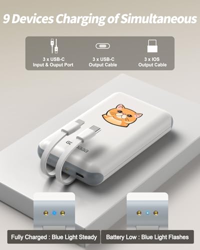 Simultaneous 9 Devices Charging: Each power bank built-in USB-C port *1, USB-C & IOS cables*1. The entire Charging Station Set can allow you to charge up to 9 devices at once. Perfect for families, teams, or travelers with multiple gadgets