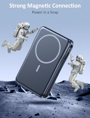 Magnetic Portable Charger, 10000mAh Power Bank, 5 in 1 Portable Charger with Built in Cable, 20W Fast Charging for Magsafe Battery Pack Compatible with iPhone 17/16/15/14/13/12 Pro/Pro Max-Black