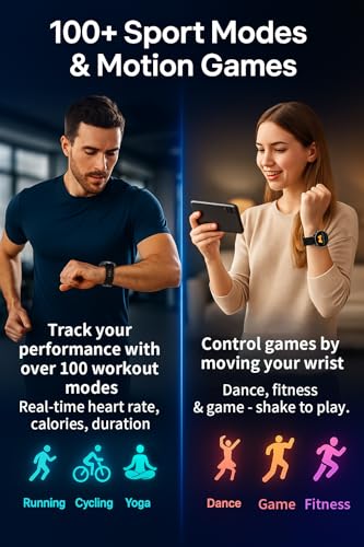 100+ Sport Modes & Motion Games – Choose from over 100 workout modes to track your fitness, and enjoy interactive motion-sensing games that make fitness fun and engaging.