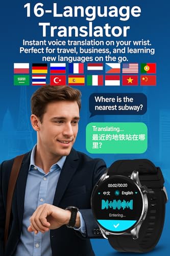 AI Smartwatch, AI Chat, 16-Language Translation, Health and Fitness Tracker, Stylish Zinc Alloy Design, 2025 Edition, Compatible with iOS/Android, Designed for Travel, Business & Fitness