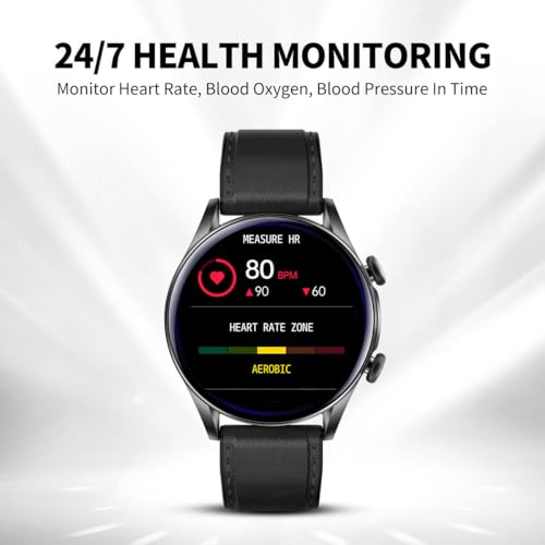 【Smart Voice & Dual-mode Bluetooth】Dual-mode Bluetooth calls make it easy to stay connected, and you can enjoy clear calls and stable music streaming with just a lift of your wrist. The smartwatch’s built-in voice assistant allows you to make and answer calls hands-free. This smartwatch perfectly combines excellent sound quality and intuitive voice control, making it an ideal choice for multitaskers, drivers or sports enthusiasts.
