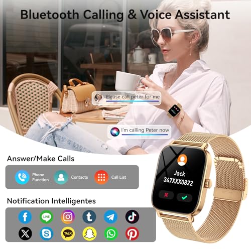Bluetooth Calling and Message Notifications Smartwatch for Women: The smart watch with text and call womens watches features speaker and microphone, enabling you to answer make and reject calls on ladies watch. When you receive calls, texts, or SNS notifications (Facebook, WhatsApp, etc.), the smartwatches for women smart watch for android phones vibrates on your wrist. You can manage directly from your wrist, ios android smart watch womens mens watch ensuring you never miss important updates.
