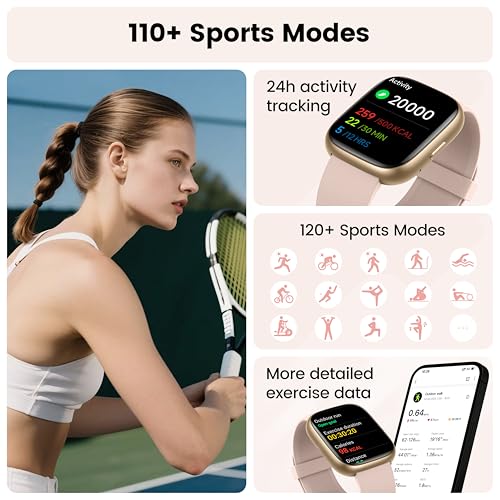 120+ Sport Modes and IP68 Waterproof: Fitness tracker supports 120+ professional sport modes, covering diverse indoor/outdoor activities like running, cycling, and soccer to suit all fitness levels. Equipped with high-precision sensors, fitness watch accurately tracks steps, distance, calories burned, and workout duration to help analyze performance and optimize training plans. With an IP68 rating, it’s resistant to sweat, rain, and handwashing (Not for swimming or hot showers)