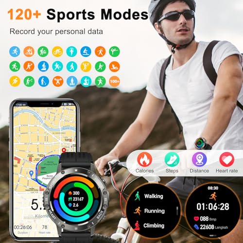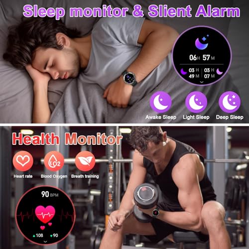 All-Day Heart Rate Monitor Watch & Sleep Monitoring Smartwatches: The health watches for men sports watch features advanced sport optical sensors and cutting-edge measurement technology to track your heart rate and blood oxygen levels, smartwatch for teenagers military smart watches for men helping you gain insights into your health. Sleep monitoring records your sleep onset time and breathing patterns, assisting you in improving sleep duration and quality to cultivate a healthier lifestyle.