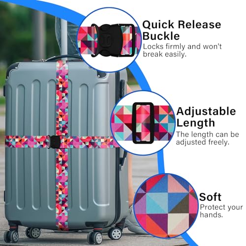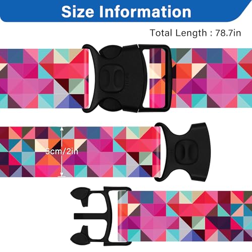 2 Pack Luggage Straps for Suitcases, Adjustable Travel Belt with Double Lock and Quick Release Buckle, Heavy Duty Nylon Bag Packing Strap, Bright Identifiers Business Travel Accessories-Colorful Block