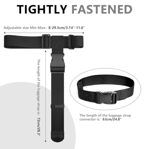 Durable Construction: Features reinforced nylon webbing and sturdy plastic buckles for exceptional load-bearing capacity and resistance to breakage. Adjustable length accommodates various sizes from 20-inch cabin bags to 28-inch checked luggage