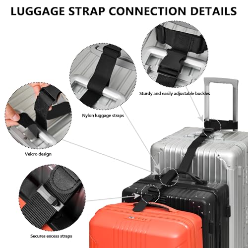 BILIONE Luggage Connector, Suitcase Straps to Connect 3 Suitcases or Add A Bag, Luggage Straps for Suitcases Adjustable Buckle Belt, 2Pack Black