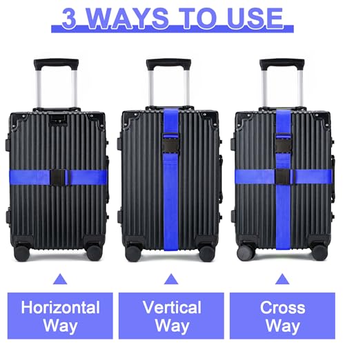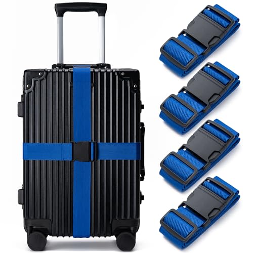 Luggage Straps for Suitcases 4 Pack, TSA Approved Travel Essentials, Luggage Strap for Travel Suitcase & Bag Closure and for Easy Identification, Travel Accessories for Safety & Convenience (Blue)