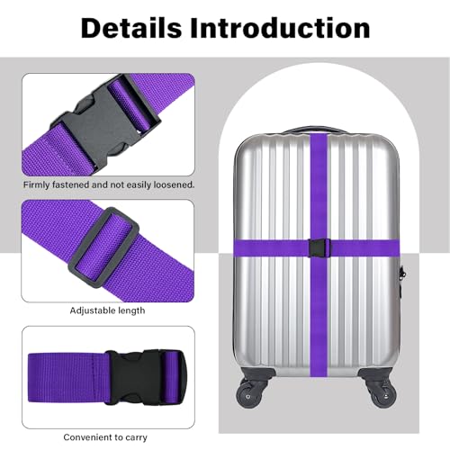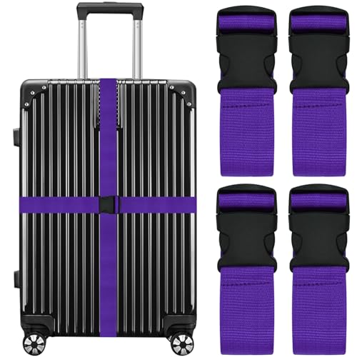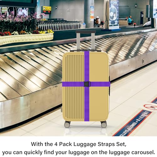 Luggage Straps for Suitcases Travel Belt Suitcase Strap, Heavy Duty with Quick-Release Buckle Suitcase Safe Belt with Name Card, Bright Color Adjustable Luggage Belts, TSA Approved, 4 Pack, Purple