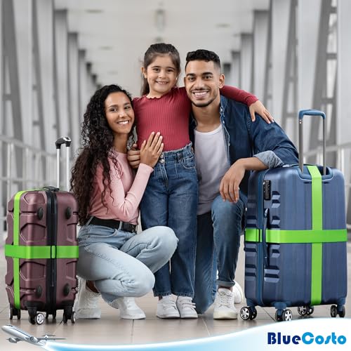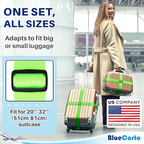 Luggage Straps for Suitcases – TSA Approved – Neon Green, 4 PK – Premium Nylon Belts for Suitcase, Briefcase & Travel Bag – Adjustable Strap Length 46″ – 78″