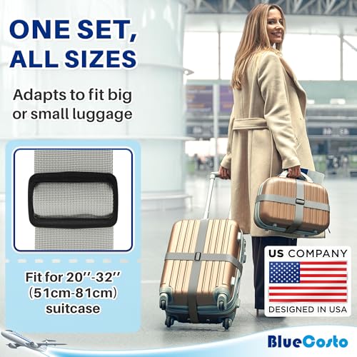 INCLUDES – Features 4 luggage straps enabling you to secure up to two suitcases w/ ease; Each luggage strap measures 78” / 200 cm in length & 2”/ 5 cm in width