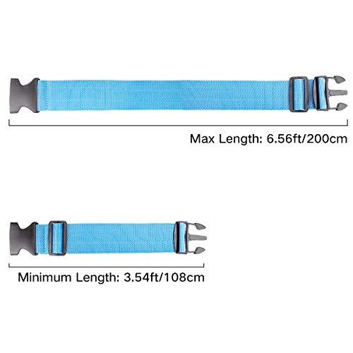 Belt length: 3.93-6.56ft; Belt width: 1.96in; Universal luggage strap fit for 20″-32″ suitcase.