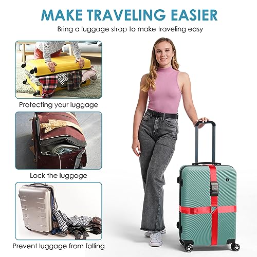 【HIGH VISIBILITY IDENTIFIER】 Stop wasting time at the baggage claim. Our vibrant, high-visibility red strap serves as a perfect luggage identifier, making your suitcase stand out among hundreds of similar bags at airports, train stations, or cruise piers.
