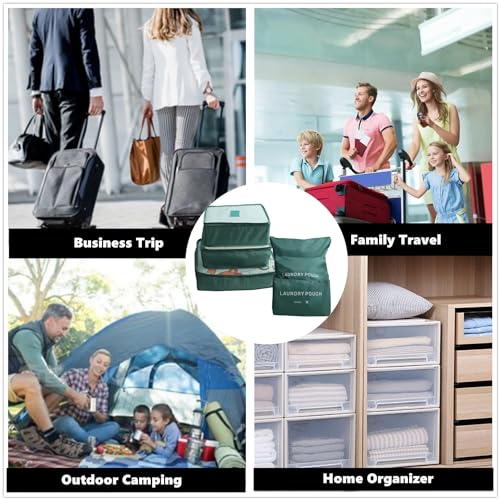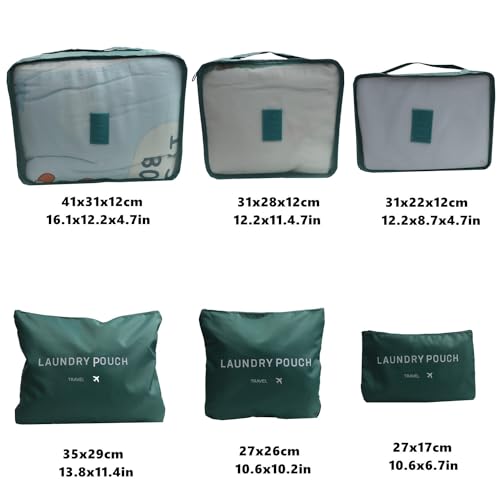 6 Pack Packing Cubes for Suitcases – Compression Luggage Packing Organizers with Laundry Pouch – Travel Storage Bags for Travel Accessories, Clothes, Cosmetics, Toiletries – Dark Green