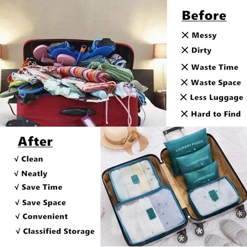 👗 Premium Material: These travel packing cubes made of high grade polyester cloth material, more tear resistant, waterproof, durable, portable, easily folded storaged, very lightweight, easy to clean and carry on.