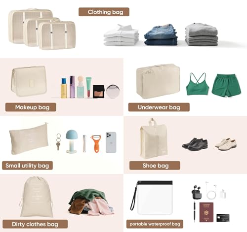 9 Set Packing Cubes for Suitcases Travel Luggage Sets Packing Organizers, Travel Organizer Bags Luggage Organizer with Shoe/Tioletry/Laundry Bag