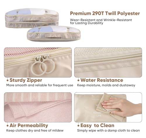 Space-Saving Compression Design: Maximize your luggage space efficiently. Our travel packing cubes for travel compression are engineered to compress your clothes, reducing their volume by about one-third. This smart design is essential for both long trips and short getaways.
