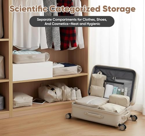 Multi-Purpose Bags for Total Organization: Stay impeccably organized with specialized bags for every item. The set includes unique packing bags for travel like a dedicated shoe bag, a cosmetic case, and a versatile drawstring bag, making it easy to separate clothes, shoes, and toiletries.
