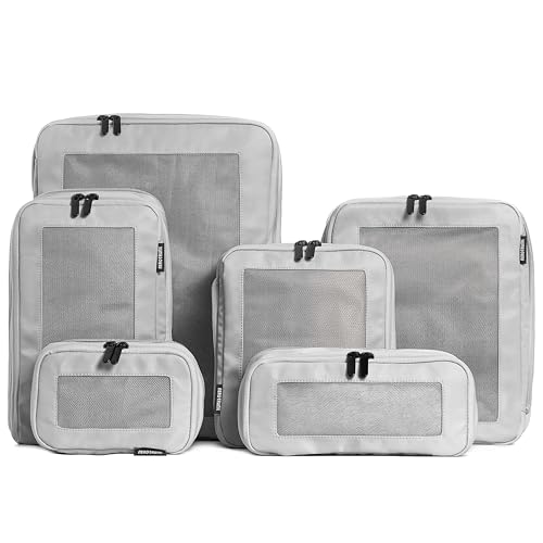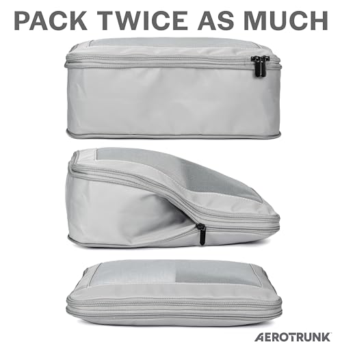 Aerotrunk Compression Packing Cubes for Travel – Luggage Organizer Bags – Double Zipper Packing Cubes for Suitcases (6-Pack, Light Grey)
