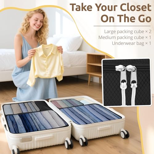 Clothes in chaos? Not anymore: Our breathable mesh cubes act like mini wardrobes. Sort by type or outfit, and keep everything neat and wrinkle-free. No more digging through your suitcase—just unzip and go